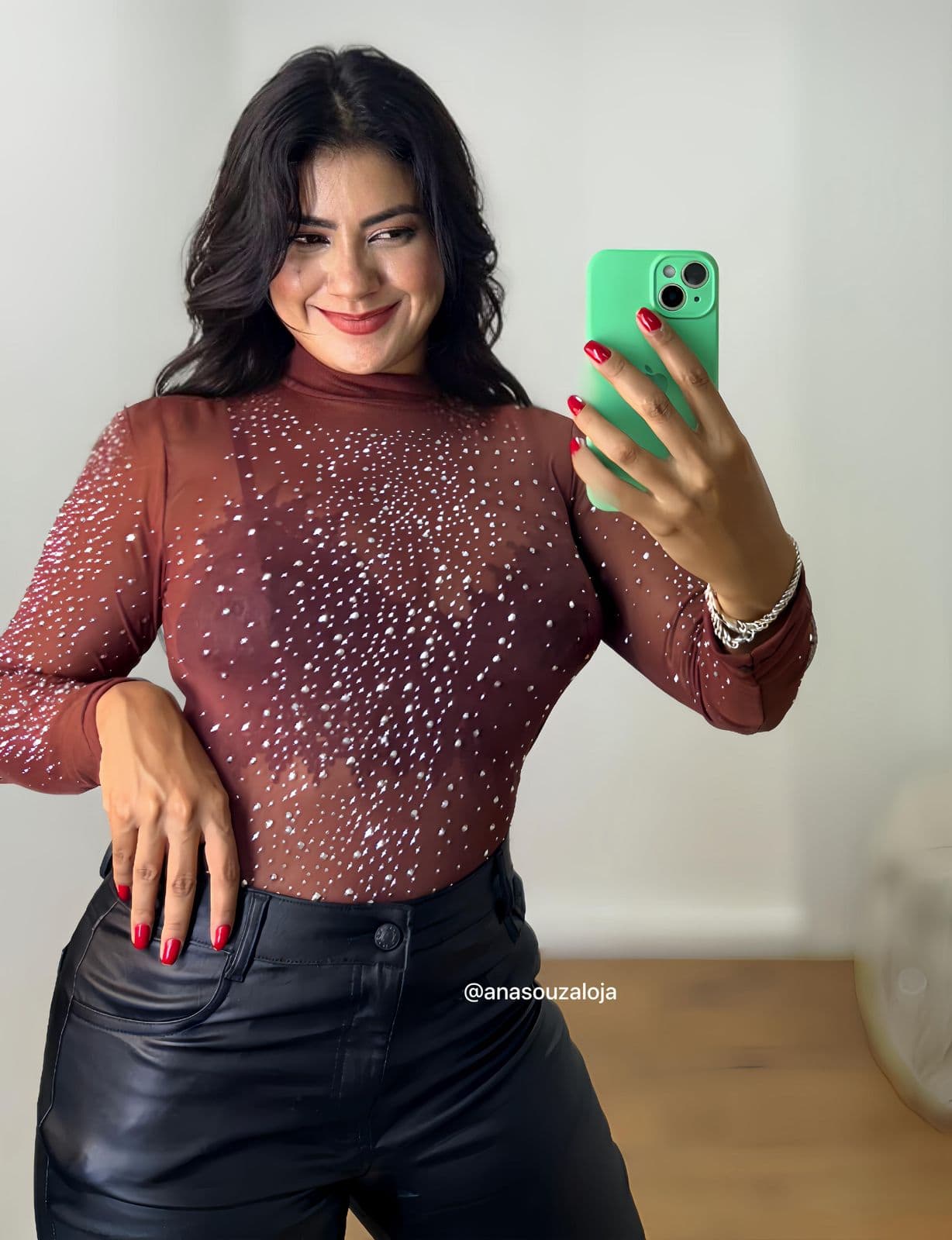 •Possui detalhe em pedrarias na parte da frente e nas mangas
