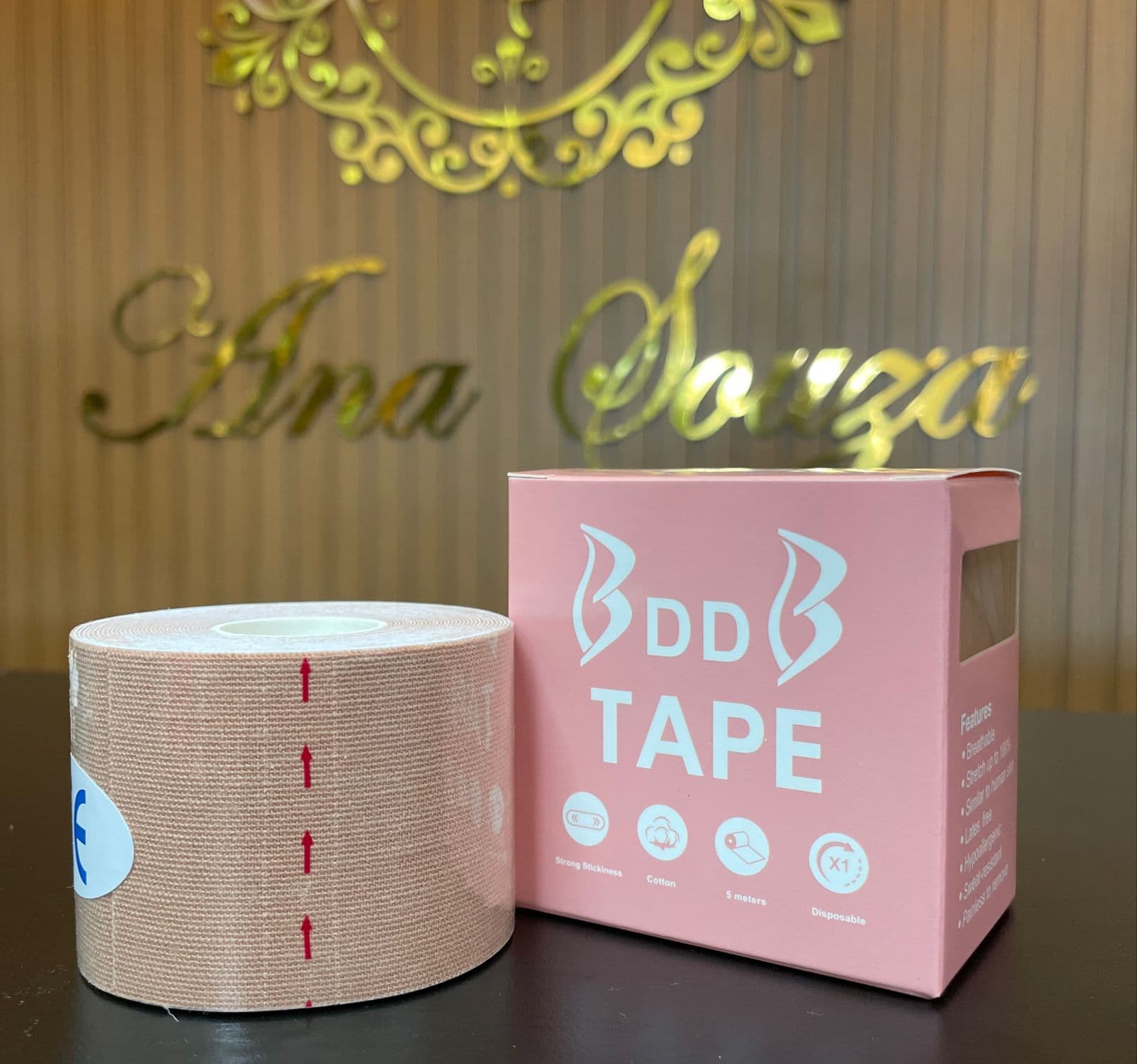 • Corte uma quantidade de fita, coloque-a sobre os seios de acordo com o efeito desejado. A fita pode ser colocada vertical, horizontal ou diagonalmente, dependendo do decote escolhido, conforme consta na embalagem do produto.
