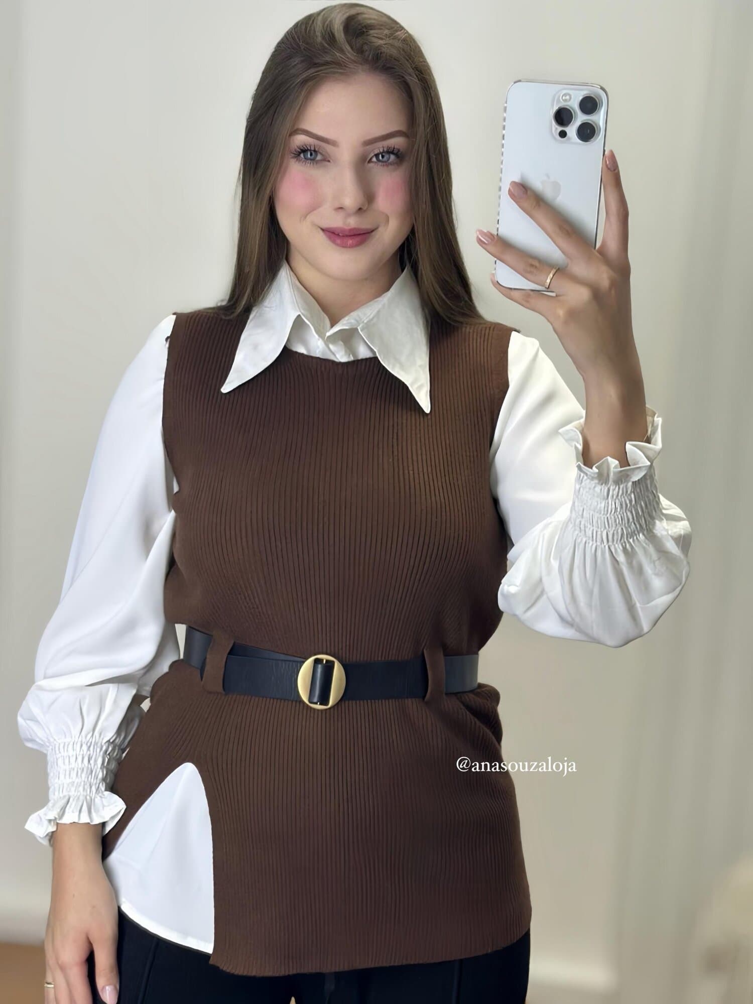 •Conjunto composto por camisa, colete e cinto