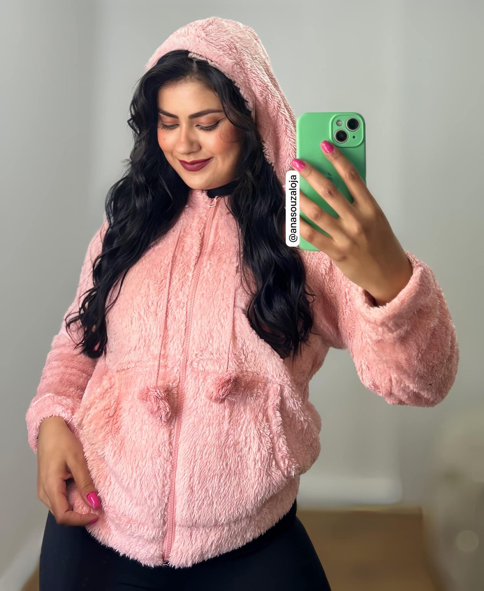 •Possui detalhe de Pompom ponta da cordinha do capuz