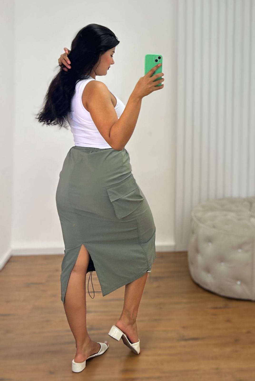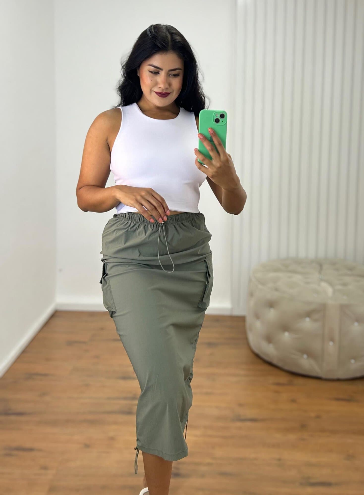 PROMO SEM TROCA LONG SKIRT PARACHUTE – VERDE MILITAR