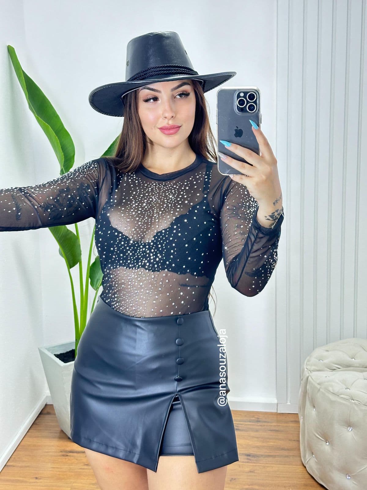 • Shorts na frente e saia atrás fechamento em zíper na lateral