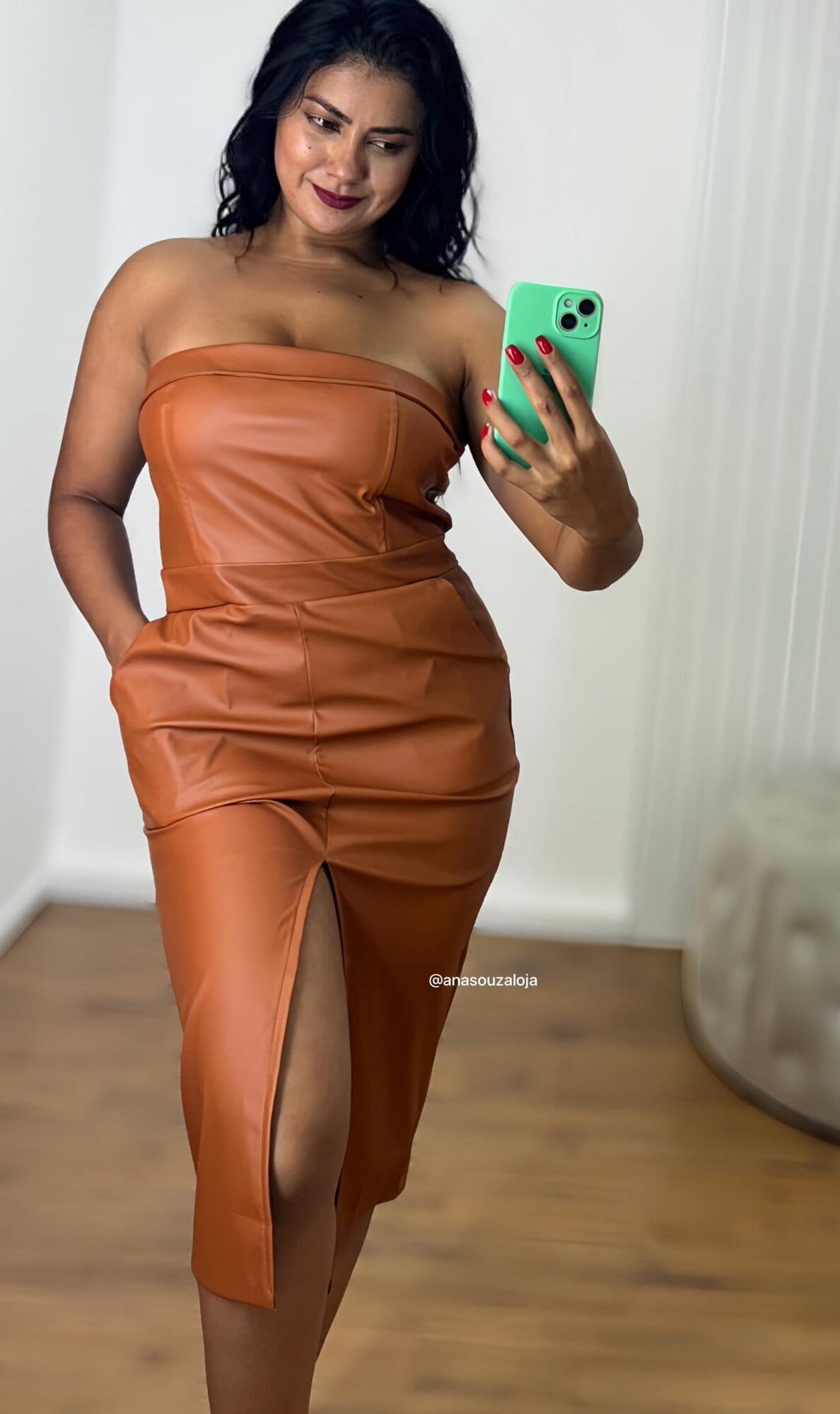 VESTIDO DE COURO DAIANA – MARROM