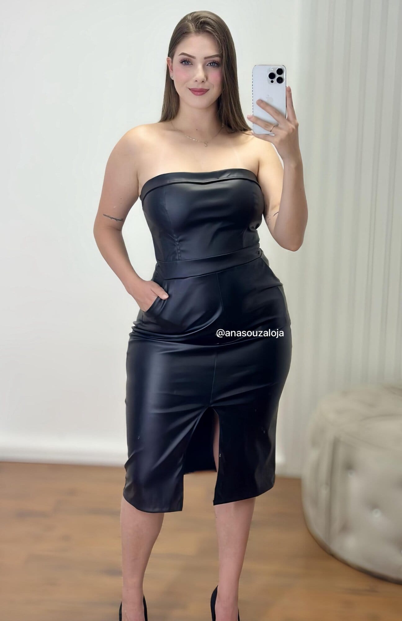 VESTIDO DE COURO DAIANA – PRETO
