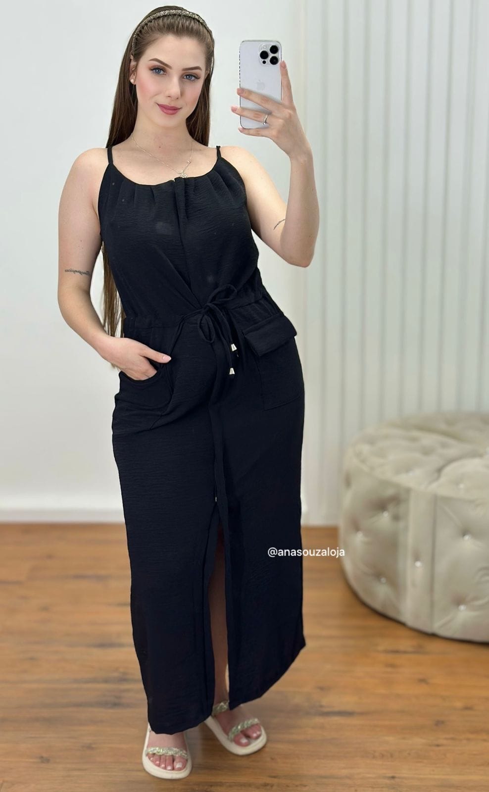 •Possui cordinha ajustável na cintura